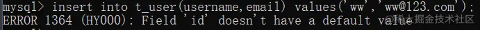 解释 : 字段id没有默认值,报错的原因是插入id字段值为NULL。