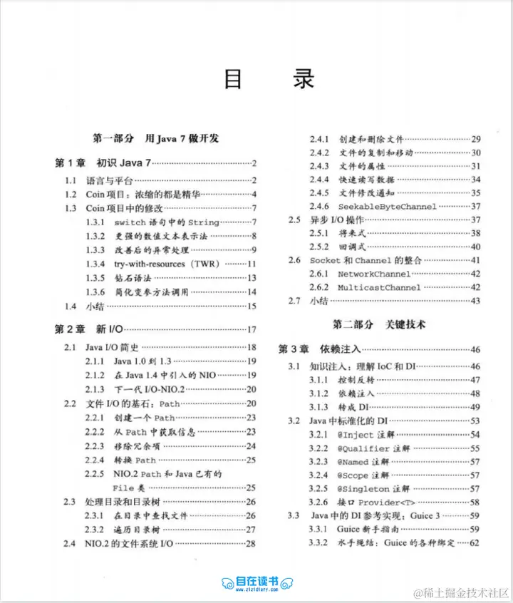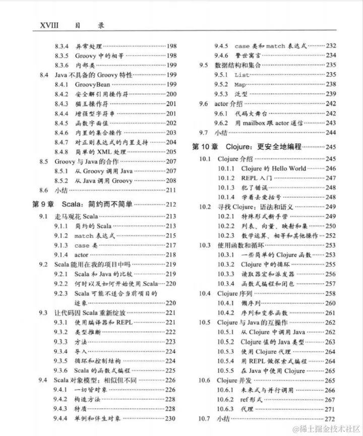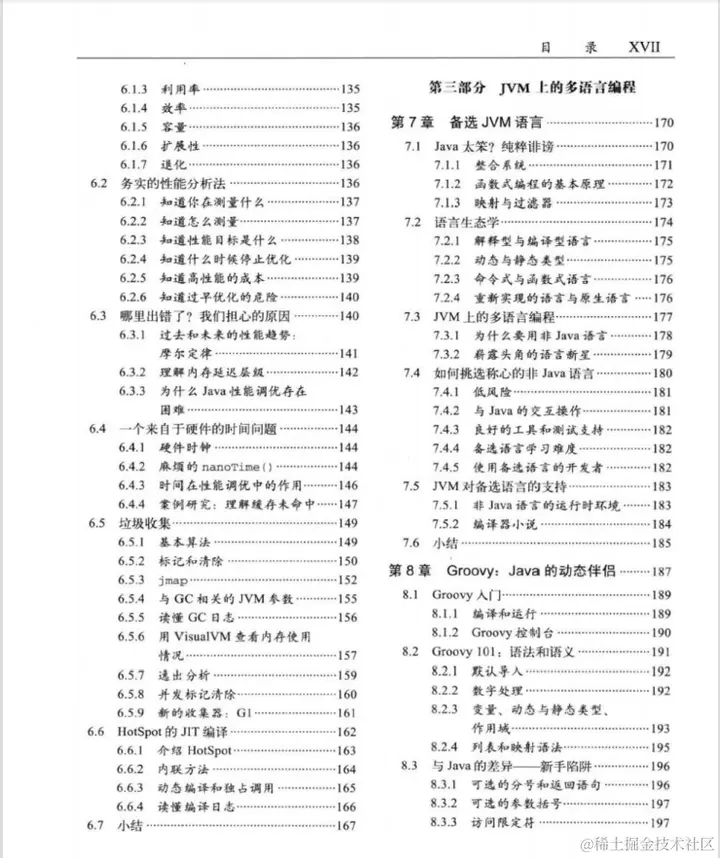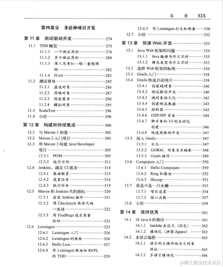 总共包含四大部分,分别是:用java7做开发、关键技术、JVM上的多语言编程以及多语种项目开发。