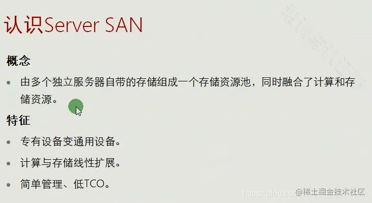- 能够将通用x86服务器的本地HDD、SSD等介质通过分布式技术组织成大规模的存储资源池