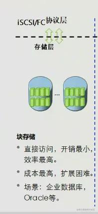 工作原理:提供一个裸块以iSCSI或FC协议的方式映射给主机,主机进行扫盘即可扫到设备,主机层在对块设备进行分区格式化创建文件系统就可以使用了