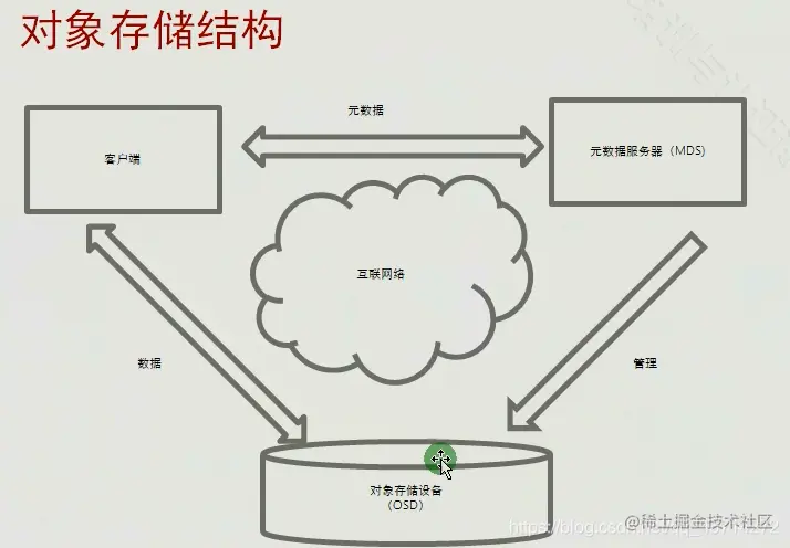 客户端通过key值,去MDS访问元数据,从而定位到对象存储的位置从而进行读写