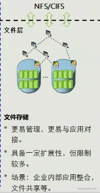 工作原理:存储自身就可以提供文件系统,给上层通过NFS或CIFS客户端来使用