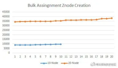 ZooKeeper 的监听事件通知处理是顺序的,旨在保证事件的顺序。这种设计在 Region 锁获取阶段将会导致延迟。在 10 个节点的集群中发现等待时间为 64 秒,而 20 节点的集群中等待时间为 111 秒。