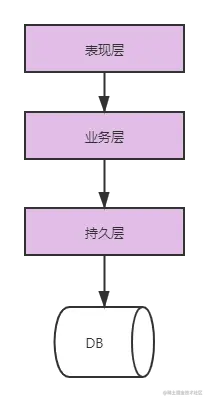 还记得在自己刚开始开发软件的时候,基本上都是一个单体应用,只是在代码模块按照了MVC模式来开发,将分为表现层,业务层,持久层,然后就将数据写入数据库,基本上都是下面的图模式,表现层负责渲染html页面,与前端接口交互,业务层负责处理数据逻辑处理,持久层将数据写入到数据库DB持久化数据,这就是经典的MVC模式,这种模式到今天都还在使用,但是在前几天自己刚刚工作的时候,能够开发出CRUD,然后将打包成WAR放到Tomcat运行就行(哦,不对,我当时实习的时候干的是C#,那时候用的服务器IIS,哎,不得不吐槽一下IIS真的难用,可能是我自己学艺不精吧,每次部署到IIS都是痛苦的经历,后来自己狠下来转做JAVA开发),基本上整体一个网站就是个单体应用,所有的代码都扔在一个工程里面,有时候改动一个小小的功能,都要动全身,看别人的代码那是真痛苦,还记得自己看过一个在线教育的项目代码,也用的是C#写的,打包出来上线的lib都差不多有1个G,跟数据库的交互都用的是存储过程来写的,有些存储过程都有1000多行,表都有400张左右,那才真叫一个痛苦啊,好了不多扯了,继续今天的主体吧,聊聊架构相关的事。