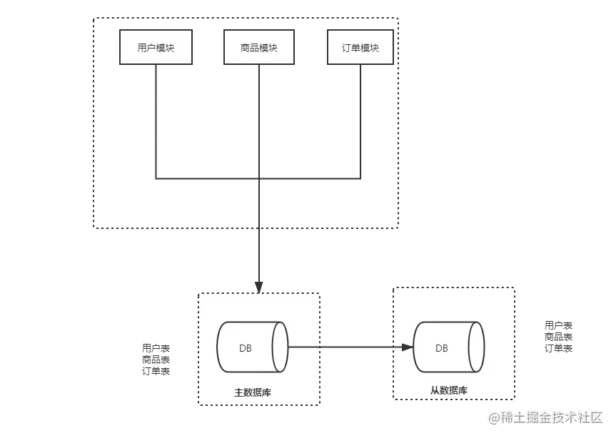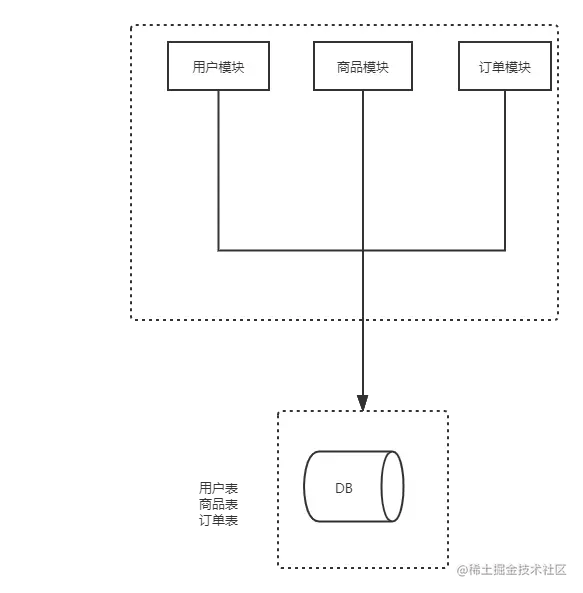在最早的时候,基本上都是单体应用,所有的模块都在一个项目里,结构也比较单一。