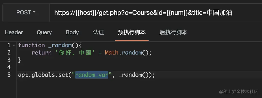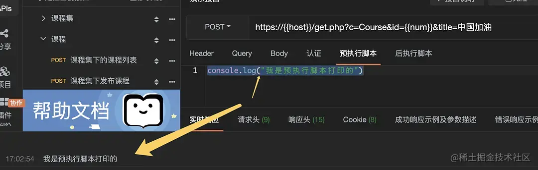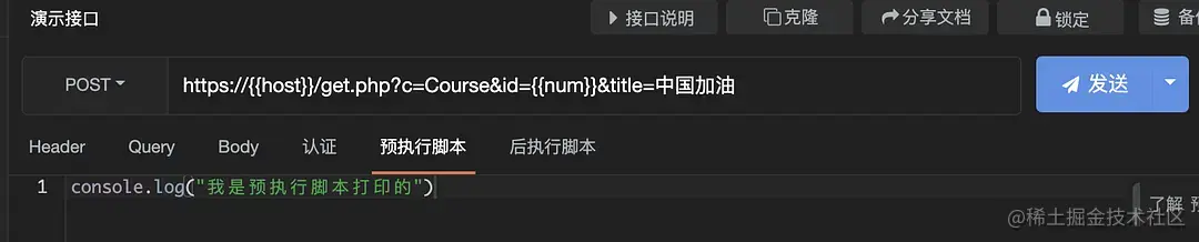 这个就需要使用apipost自带的脚本功能,有预执行脚本和后执行脚本