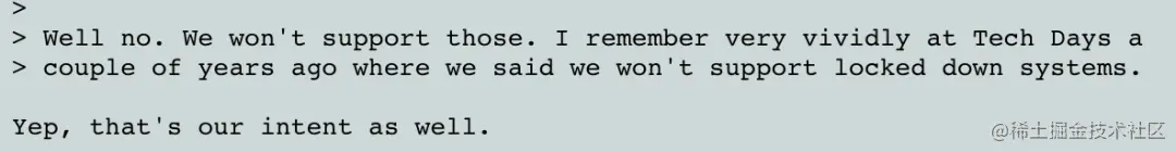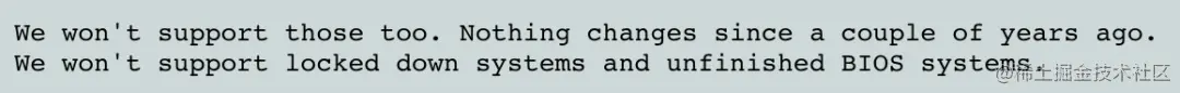 Borislav没有被说服,并且开始谈起BIOS是多么的“糟糕”,并多次提到不想提供对带有配置锁定的系统的支持: