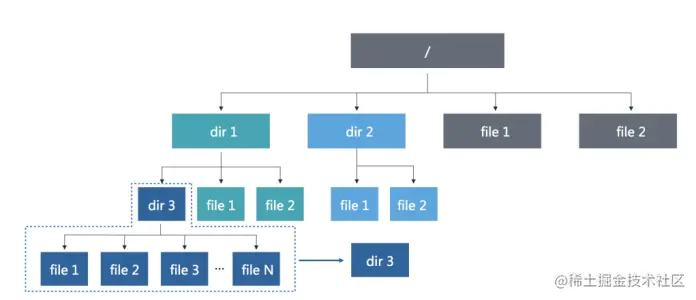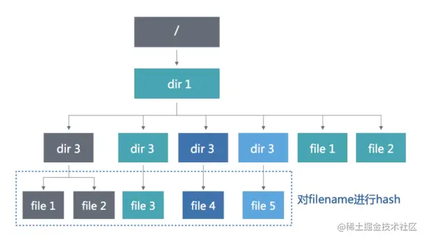 从这个图中,我们可以看到,假如dir3目录中有大量文件,比如说几百万,上千万文件,训练的时候,多个计算节点需要同时读这批文件的时候,dir3所在的MDS节点就会变成一个热点。