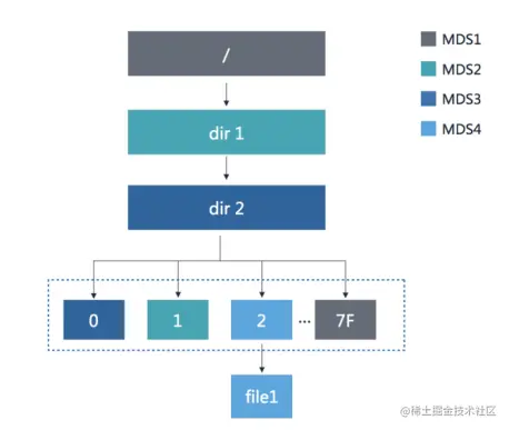 - 每一级目录都会根据Entry name进行hash再次选择MDS,保证横向扩展的能力;