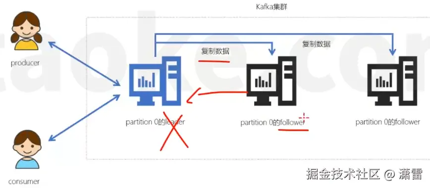 - 1、kafka 中的 leader 负责处理读写操作,而 follower 只负责副本数据的同步;
