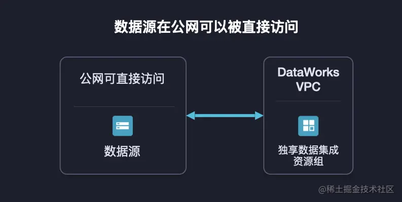 如果数据源具备公网访问能力的话,那么数据源与资源组之间可以直接通过公网互访。