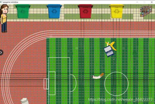 游戏解说:只有把操场上的垃圾全部分类放好,游戏才会胜利。