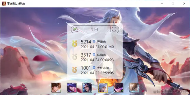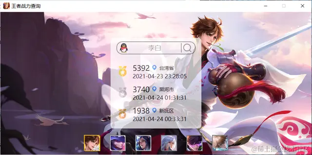 根据下面的提供的王者荣耀最低战力查询的Python源码,使用PYQT5搭建了一个GUI,同时还可以看每个英雄皮肤的高清图。