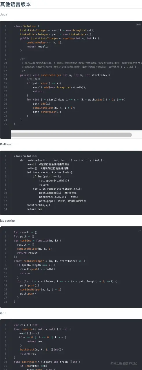 每篇文章的排版、代码都足够清晰,同时除了C++外,支持多门语言: