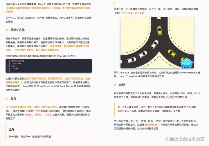 因此我向大家推荐下面这份并发编程的小册子,里面干货加图片透彻解析,通过真实案例、源码分析,帮助大家深入并发编程的核心:线程、锁、并发模型等等。