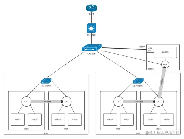 要解读经文,需要使用每一格中一个不起眼的法宝,就是称为Openvswitch的虚拟交换机,顾名思义就是起到经文在虚拟私密空间和物理空间之间的转换作用。