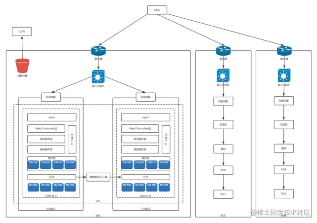 刚才那张图画的是一个可用区的情况,对于多个可用区的情况,我们可以隐去计算节点的情况,将外网访问区域放大。