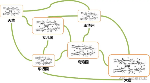 这个叫路由表,根据这个表格,可以告诉唐僧怎么走。
