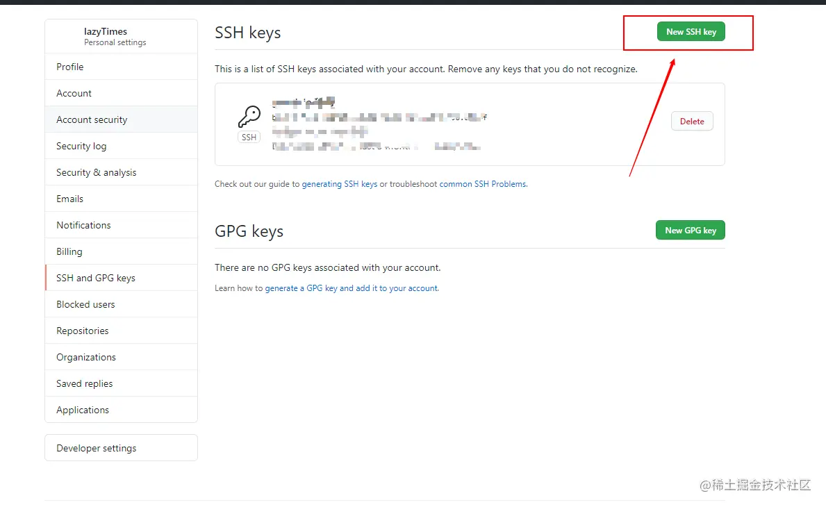 选择 New SSH key