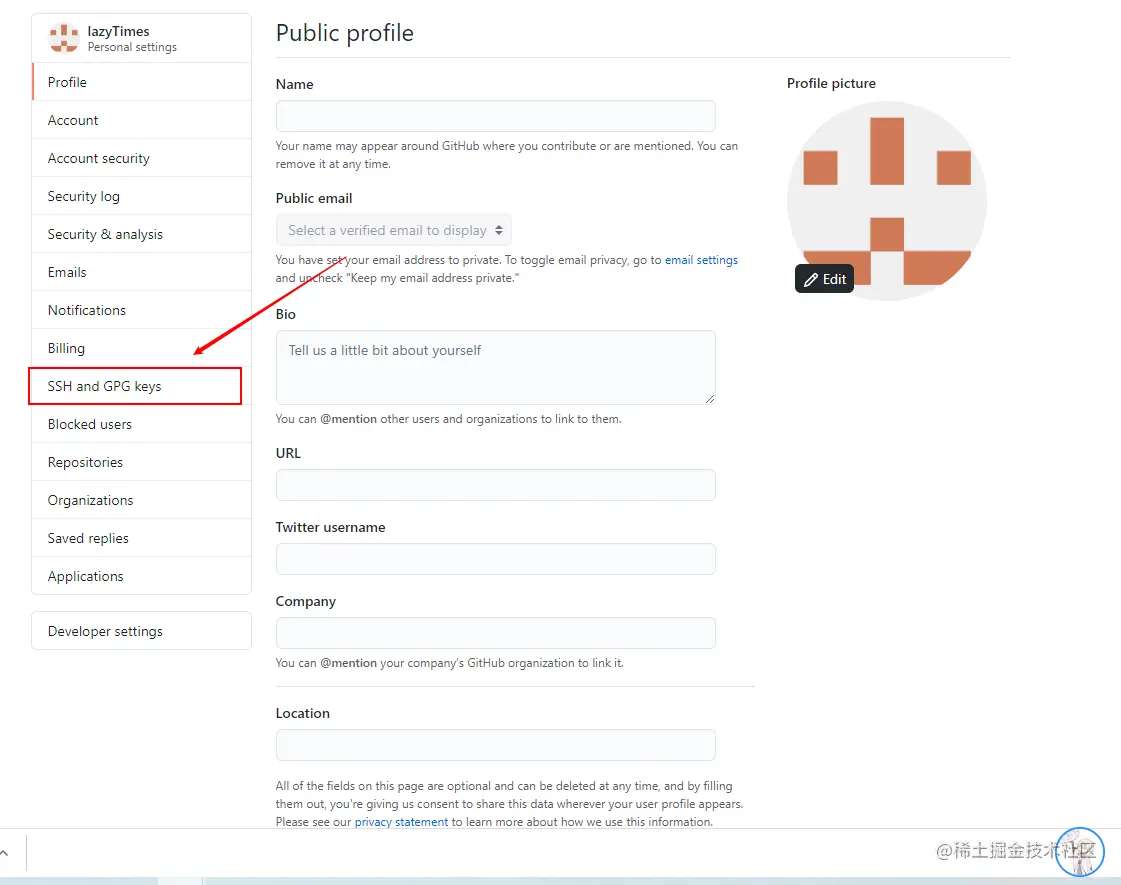 选择SSH and GPG keys