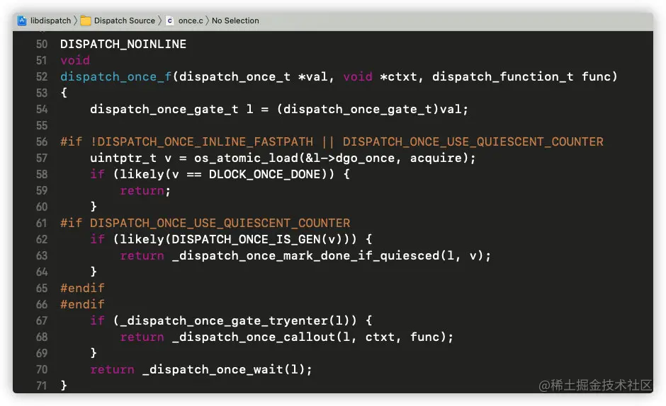 接下来,我们来看一下dispatch_once_f的具体实现: