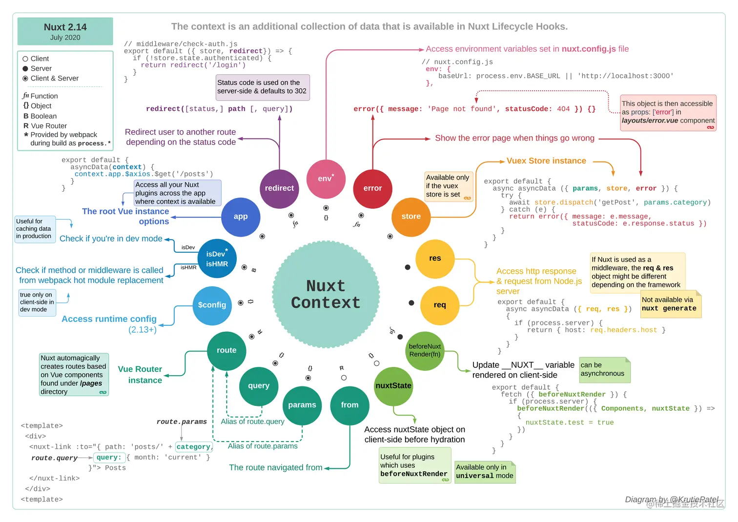 context 对象在特定的 Nuxt 函数中可用如 asyncData、 plugins、 middleware 和 nuxtServerInit。我们还可以通过注册 plugins 向 context.app 中注入我们常用的方法,如:封装后的 axios 实例等。
