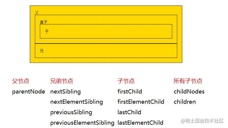 DOM的节点并不是孤立的,因此可以通过DOM节点之间的相对关系对它们进行访问。如下:
