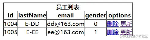 Rest 中删除的请求地址应该是/employee/id},所以列表按钮【删除】对应超链接要改: