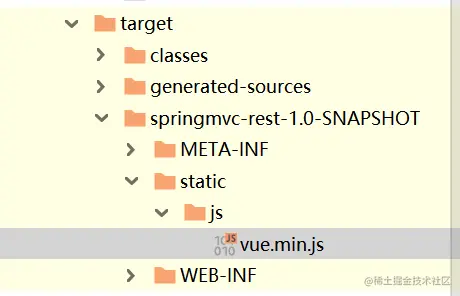 在 webapp 下新建一个static\js,用于存放静态文件。网上下载一个 vue.js,放到这个文件夹下。