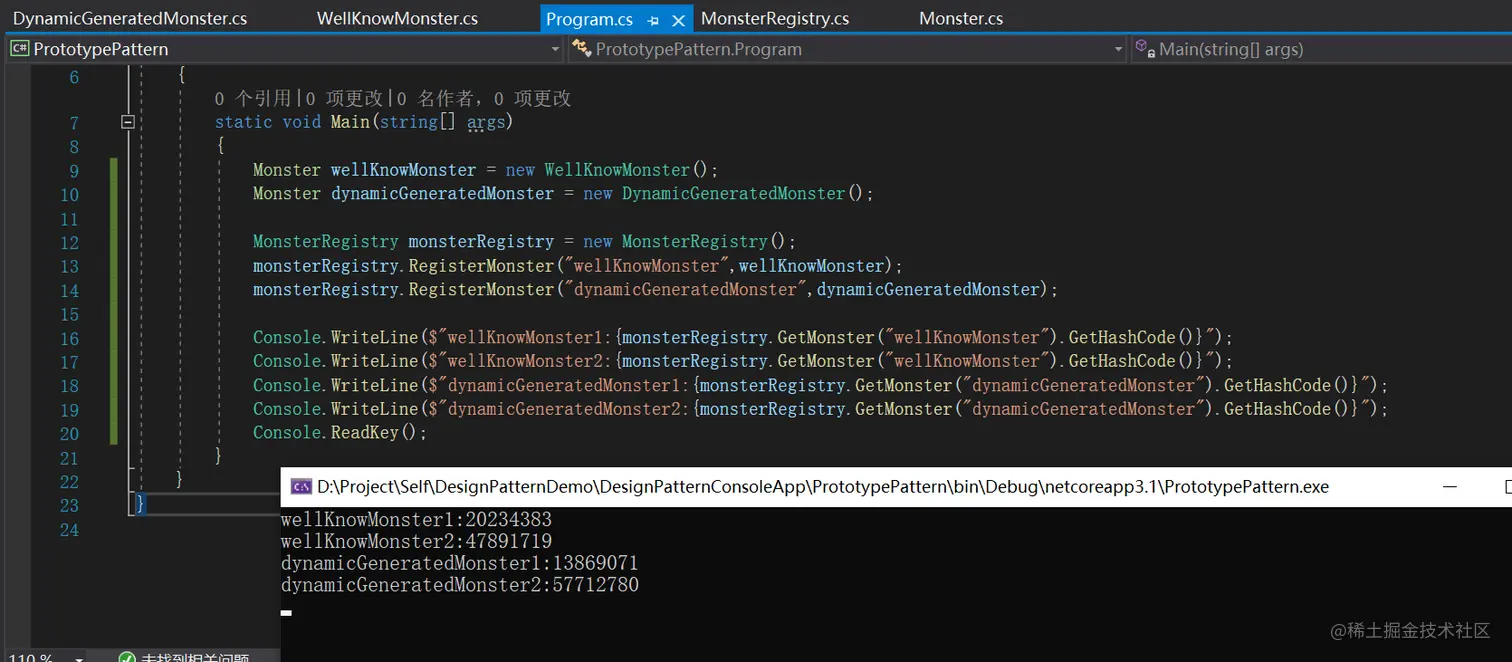 原型角色:定义用于复制现有实例来生成新实例的方法(Monster)。