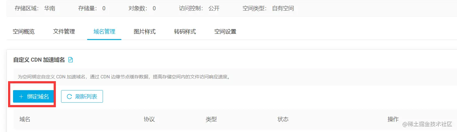 (2)创建完毕后,在该存储空间自定义加速域名(必须是已备案的域名),比如你的域名是baidu.com,可以绑定加速域名为img.baidu.com,img就是前缀,后面用作域名解析时的 主机记录