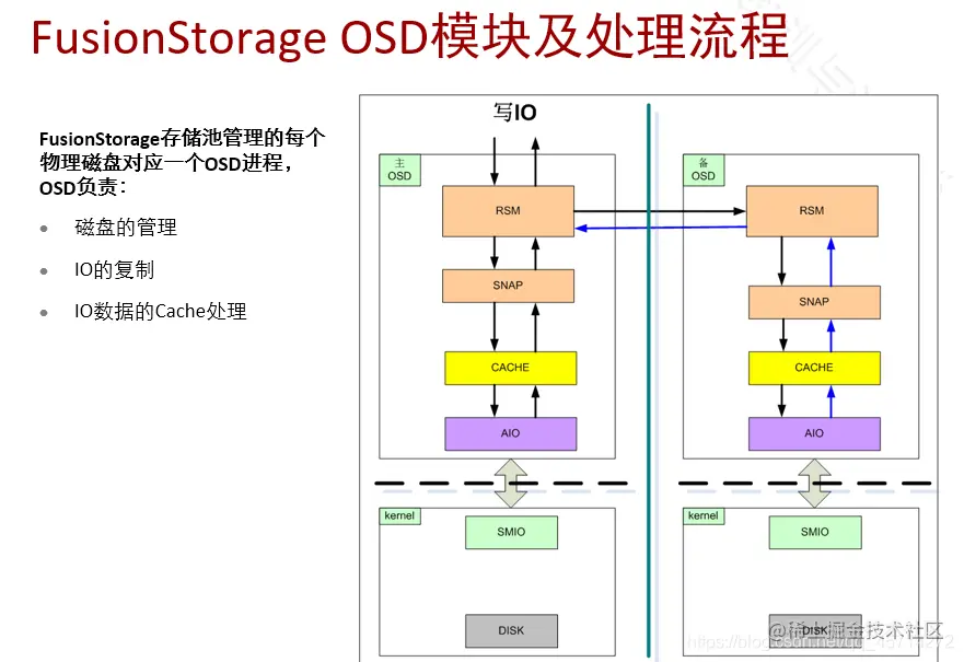 ---》client(key--hash--mod--patition--查io view--主OSD)---》主OSD(key--hash--mod--patition--查patition view--备OSD)--》主OSD一方面下发写IO到本端cache,一方面通过RSM复制IO到备OSD---》主备OSD同步写cache成功--》由主OSD返回VBS写成功(回写),VBS返回APP写成功。