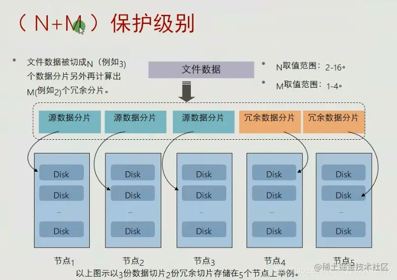 N+M 坏M块硬盘或者M个节点数据不丢失,业务不中断