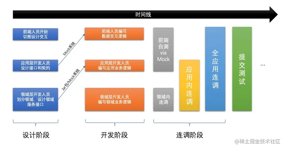 - 架构师设计完领域后分工给领域层开发,进行领域边界明确,然后领域层开发开始设计数据库表等。