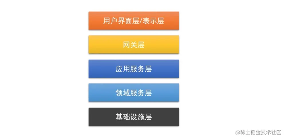 本文阐述了一种将分层设计和DDD领域设计思想应用于微服务体系架构的方案实践,也是个人的最佳实践。对于大部分互联网公司来说,我们主张将其Web服务架构分为五层:基础设施层、领域服务层、应用服务层、网关层和用户界面层(表示层)。