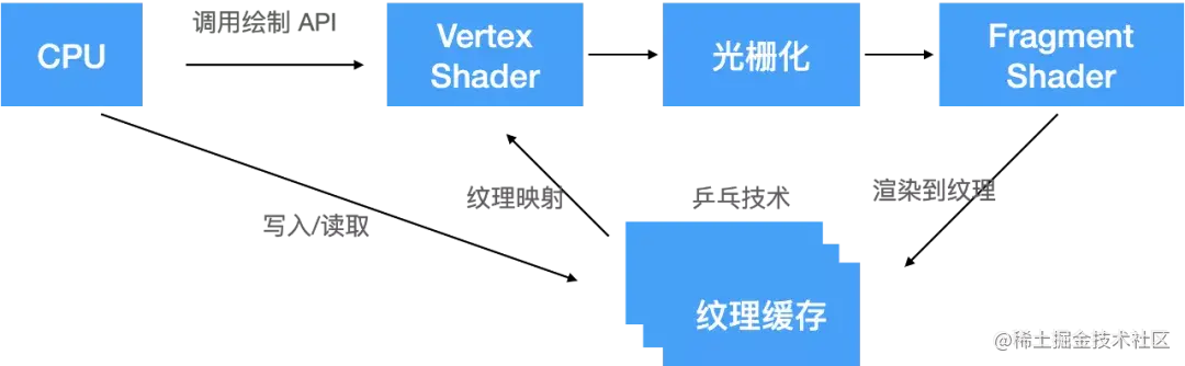 - 计算逻辑写在 Vertex Shader 中,不再需要晦涩的纹理映射,可以直接使用 Buffer 读写数据;