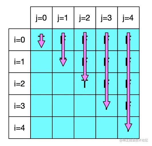 从 j开始,再循环 i循环的原因是根据填写 dp 状态表格顺序!
