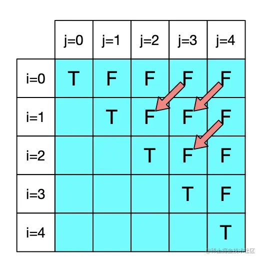 第 3 步 初始化,对角线一定是 True,其他初始化为 False。