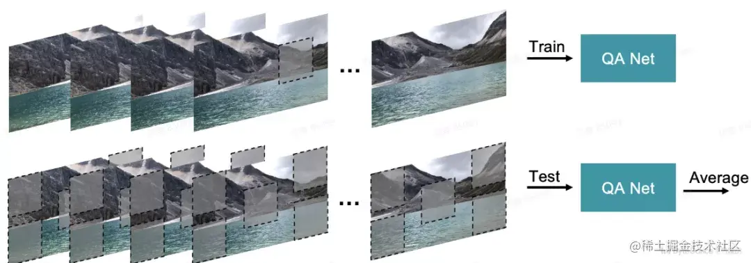 如图 6 所示,在训练过程中,从压缩视频片段和相应的参考视频片段中随机裁剪出一个 256×256 的图像块 patch (针对 FR 框架),然后将压缩视频的质量评分直接作为裁剪 patch 的训练标签。