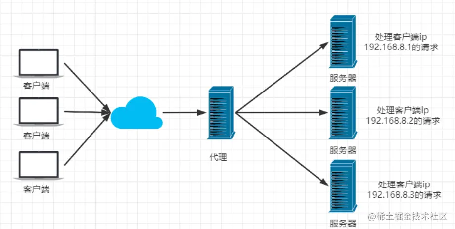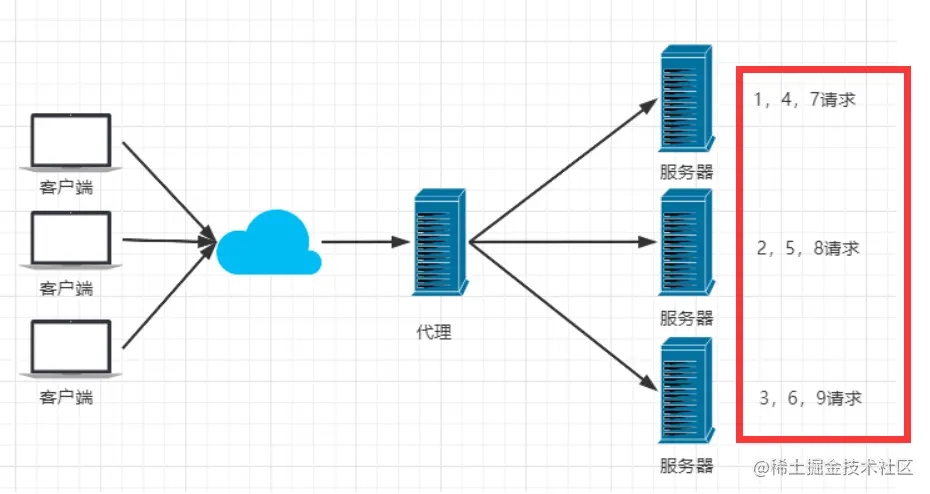 我们希望这个代理服务器可以帮助我们接收用户的请求,然后将用户的请求按照规则帮我们转发到不同的服务器节点之上。