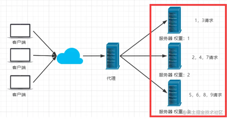 这个过程用户是无感知的,用户并不知道是哪个服务器返回的结果,我们还希望他可以按照服务器的性能提供不同的权重选择。保证最佳体验!所以我们使用了Nginx。