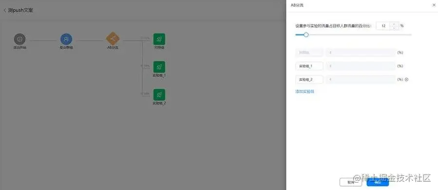 可以根据需求调整目标人群百分比,并根据文案个数调整实验组个数。