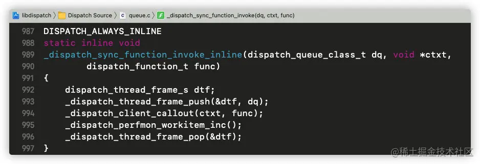 继续查看_dispatch_sync_function_invoke_inline方法;