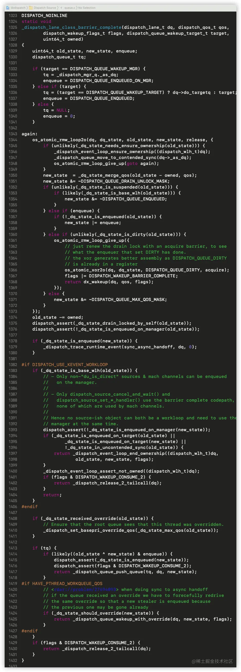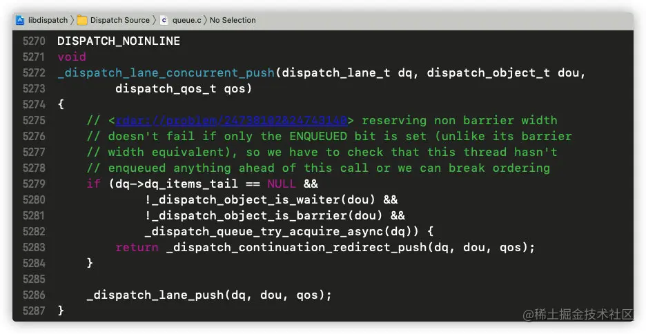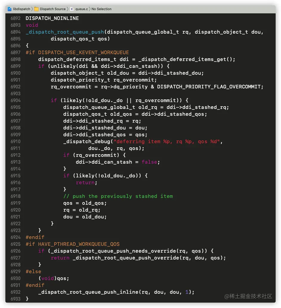 这个时候就已经很复杂,我们以全局并发队列的dq_push继续分析: