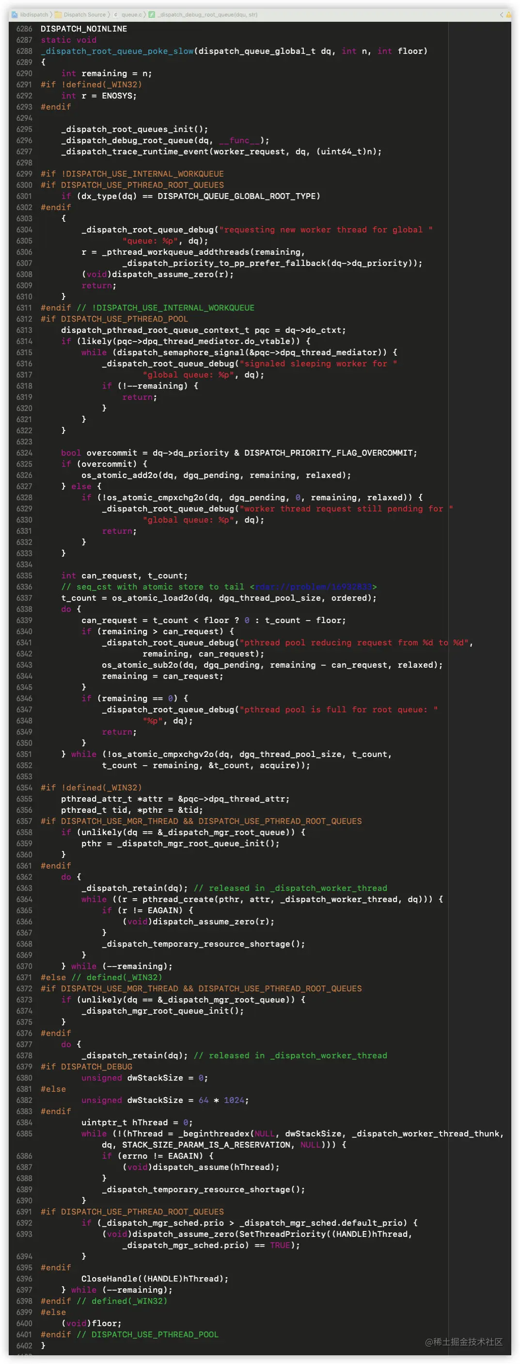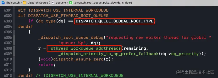 接下来,我们回到_dispatch_root_queue_poke_slow函数的实现中继续分析: