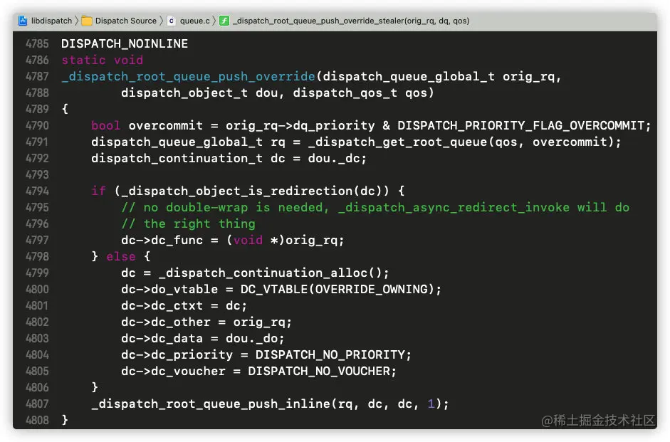 我们发现_dispatch_root_queue_push_override方法中,最后还是调用了_dispatch_root_queue_push_inline方法;