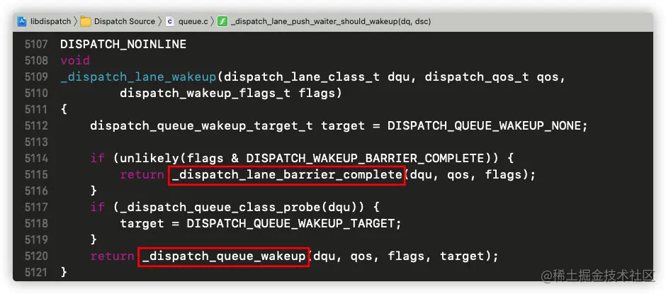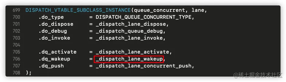 我们发现,在并发队列中dq_wakeup赋值的是_dispatch_lane_wakeup;