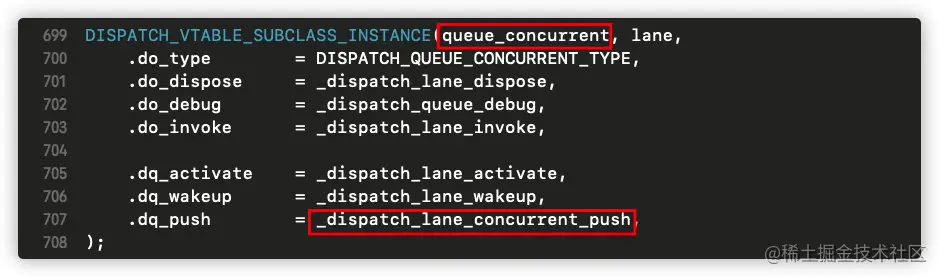 在并发队列中,dq_push被赋值为:_dispatch_lane_concurrent_push;