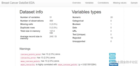 探索性数据分析EDA:使用pandas_profiling库分析数据数值情况,缺失率及相关性等。