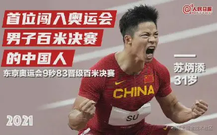 近期热度最高的运动员是苏炳添,苏炳添在东京奥运会中以9秒83的成绩成功晋级百米决赛,成为首位闯入奥运会男子百米决赛的中国人,被网友称为“苏神”;